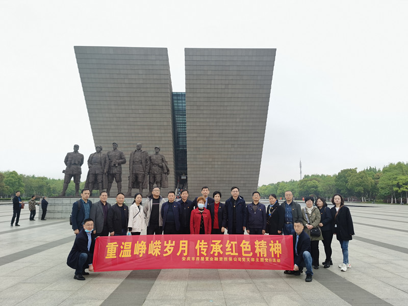 4月25日,安慶市房屋置業(yè)融資擔(dān)保公司黨支部組織全體黨員到渡江戰(zhàn)役紀(jì)念館,把黨史學(xué)習(xí)教育的課堂搬到這里,開展“重溫崢嶸歲月、傳承紅色精神”主題黨日活動。渡江戰(zhàn)役紀(jì)念館坐落在巢湖之濱,以基本展陳《百萬雄師過大江》為主線,共展出珍貴歷史照片、文物、油畫、雕塑2500余件,再現(xiàn)了革命艱難歷程、軍民團(tuán)結(jié)一心的恢宏篇章。通過一件件歷史文物、一幅幅革命影像,為我們再現(xiàn)了軍民奮勇渡江作戰(zhàn)的壯闊畫面。活動期間,再次重溫了入黨誓詞,部分黨員還分別進(jìn)行了戰(zhàn)役介紹、戰(zhàn)役中的小故事、觀后感活動。不忘歷史,開創(chuàng)未來,通過追尋渡江戰(zhàn)役英烈們的足跡,牢記革命先烈浴血奮戰(zhàn)、不怕犧牲的歷史,感悟初心使命,汲取奮斗力量,為推進(jìn)置業(yè)擔(dān)保國有企業(yè)改革發(fā)展開拓新局面。活動還邀請了局紀(jì)檢組、機(jī)關(guān)黨委、企指科和股權(quán)單位相關(guān)負(fù)責(zé)人參加。