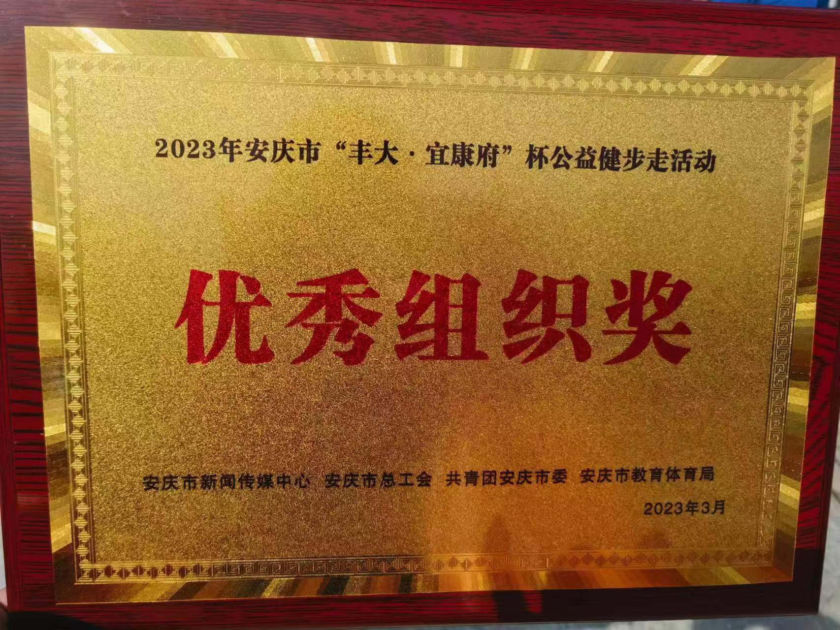 為更好的豐富廣大職工文體生活,增進職工工作凝聚力,推進全民健身國家戰(zhàn)略和健康中國戰(zhàn)略,增強全民身體素質。3月25日上午,公司組織廣大職工參加了由市新聞傳媒中心、市總工會、團市委、市教體局聯(lián)合開展2023年安慶市“豐大·宜康府”杯公益健步走活動,與集團同事組建“金融控股集團”方陣?;顒又?,大家步調一致,健步快走,整個方陣第一個走完5公里路程到達終點,獲得主辦方頒發(fā)的“優(yōu)秀組織獎”。(辦公室 蘇傳云)